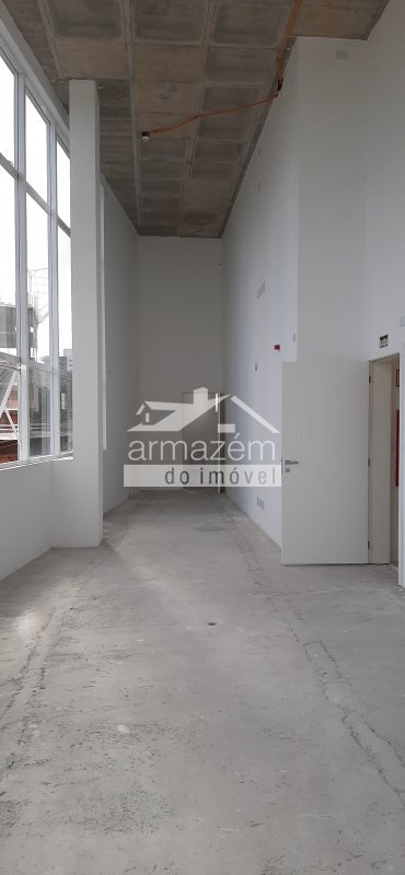 Descrição › Sala comercial em andar com pé direito duplo possibilidade de fazer mezanino e mais 2 banheiros.
